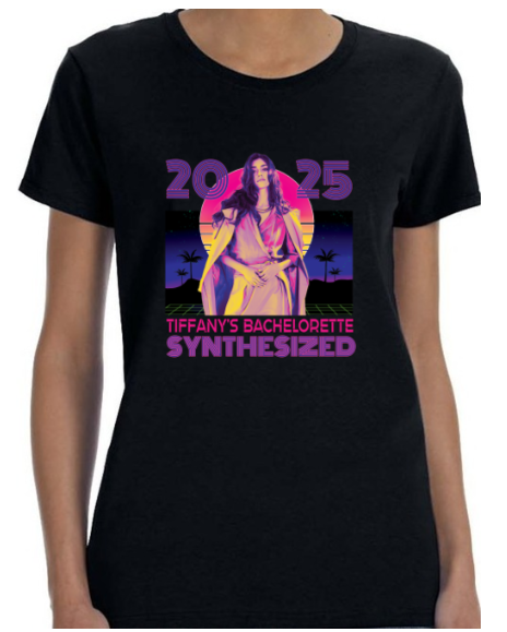 The “Synthwave 80s Aesthetic” shirt is perfect for a bride to be who wants her squad to embrace a strong theme. The neon-inspired look makes it a great fit for a night of dancing, drinks, and photos. It highlights the bubbly energy of the event while giving bridesmaids a shirt they can use long after. The retro-inspired graphics add a pop of life to the outfit, making it one of the coolest bachelorette shirts in the pack.