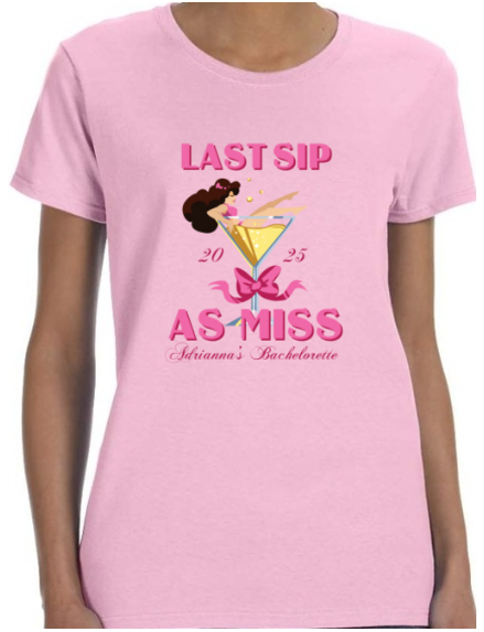 The “Last Miss Light” design captures the transition of the bride to be as she moves from single life toward her future hubby. The design reflects a sense of humor while keeping it stylish, which makes it stand out among other cute bachelorette shirts. Bridesmaids can easily personalize the shirt with accessories like a veil or match it with coordinated bottoms. Its thoughtful design ensures it does not stay limited to one location or event, but instead works as a casual piece afterward.