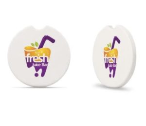 Here’s an intriguing one! Instead of the standard coaster, these will make an impression in more than one place. Why? These will fit in your car’s cup holder! These fit most cars and will keep spills to a minimum. It has a finger notch for easy removal from clean and dry cup holders. Every car will have your logo! Made of naturally absorbent stone. Check out our collection of stone car coasters for the best in one-of-a-kind, handcrafted items from our custom coasters product.