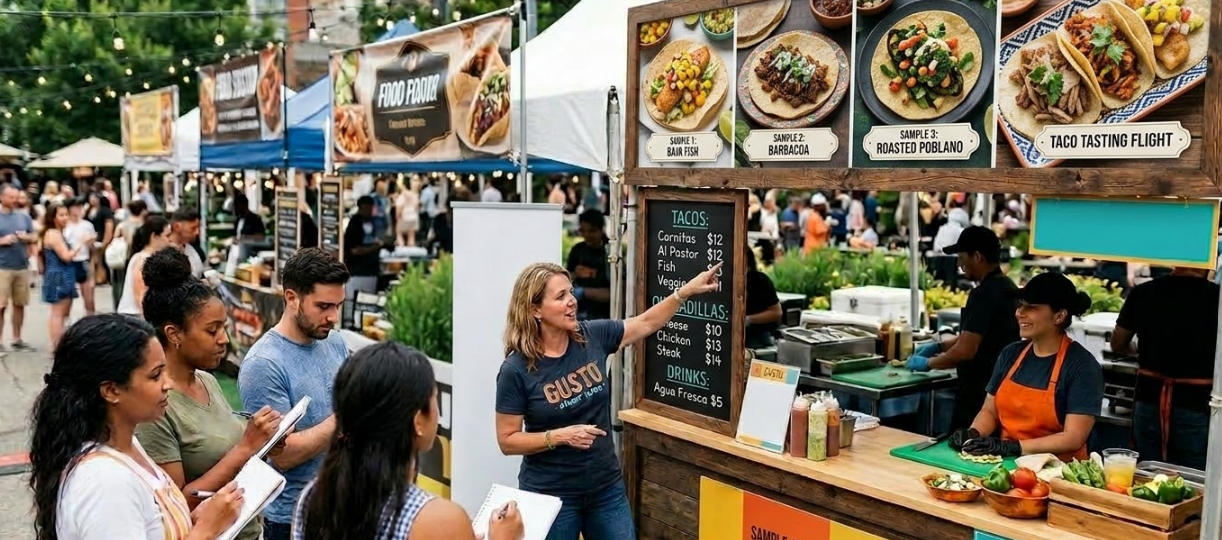 By focusing on food festival booth branding, implementing practical food vendor tent setup tips, and learning from examples of successful food booth designs, businesses can create a strong and inviting presence. These efforts not only increase traffic and sales during the event but also build long term brand recognition.