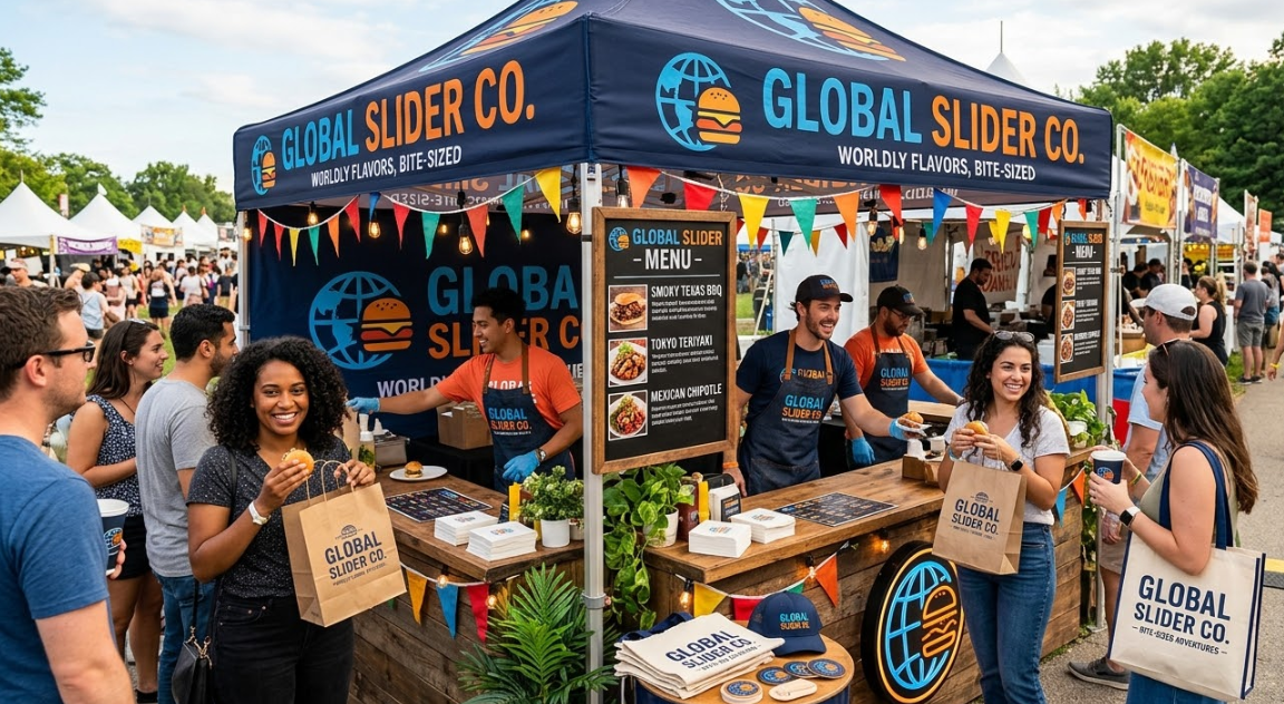 Strong branding and visual appeal in food booths can transform a simple tent into a memorable experience. From large scale displays that draw attention from afar to small branded giveaways that extend your reach beyond the event, every element matters. Businesses that invest in strategic booth design, signage, and promotional items are better prepared to boost traffic, increase sales, and create lasting impressions.