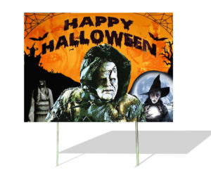 Decorate your lawn with a personalized “trunk or treat” yard sign to point visitors to the Halloween parade. Just below the area to enter a customized message, the outdoor decoration includes traditional Halloween friends including Frankenstein, a ghost, and a witch. With our variety of font styles and colors, you can easily alter the look of your text. Using the metal spike that is provided, you may secure the robust corrugated plastic yard sign to your lawn. Our happy Halloween yard signs, which are accented with the Halloween theme line, will welcome guests to your spooky gatherings! These signs come in two sizes, 12 x 18 inches and 18 x 24 inches, and come with H-wire stands. With our cheerful Halloween yard decorations, celebrate Halloween with your neighbors, welcome children, and encourage candy-hunting. Set up Halloween fundraising events for organizations and use these striking signs to get people to donate. Use cheerful Halloween yard decorations to inspire a joyful mood among your neighbors and visitors.