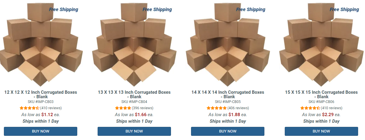 You can find self-sealing poly mailers, clear t-shirt bags, corrugated cardboard boxes, shipping tapes, natural kraft eco mailers that can be padded or non padded, full color custom mailer boxes.