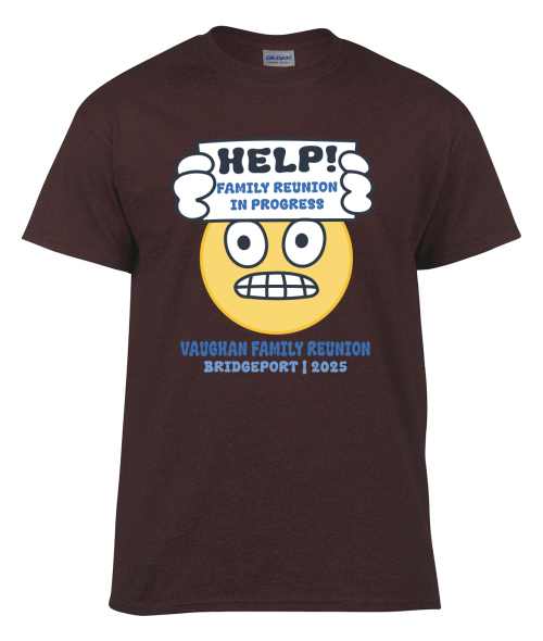 For families who enjoy a bit of humor, this design features an emoji holding a “Help” sign, perfect for large and energetic gatherings. You can customize the text with your family name, select a shirt color, and choose from different emoji styles. Bright colors make the joke more noticeable in photos, but gray and other muted tones can also work. It’s easy to enter your customization, check the preview, and place the order when you’re ready.