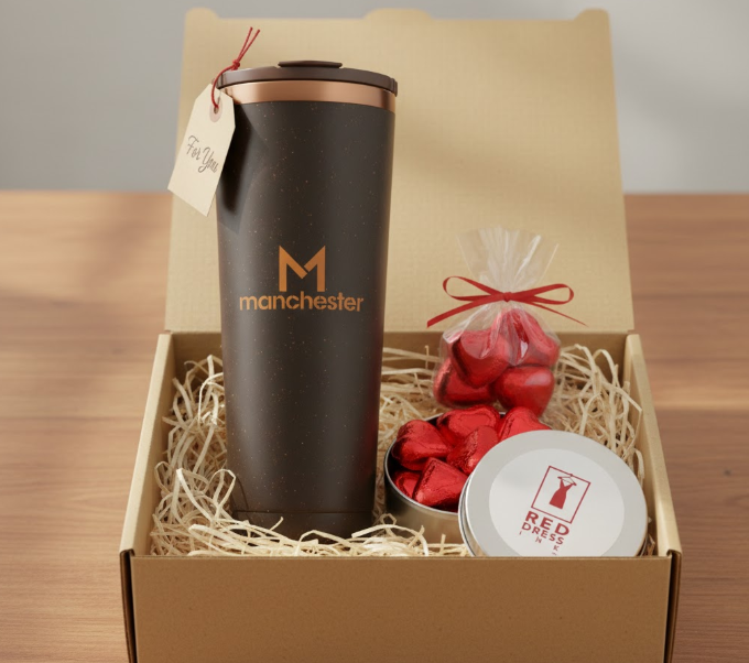 Valentine’s Day promotional items should support a romantic or sentimental theme while still offering everyday usability. Mugs and coffee accessories are strong options because they combine comfort with daily ritual. A branded mug paired with a message of appreciation or love can become part of a consumer’s morning routine, reinforcing brand recall long after the holiday.