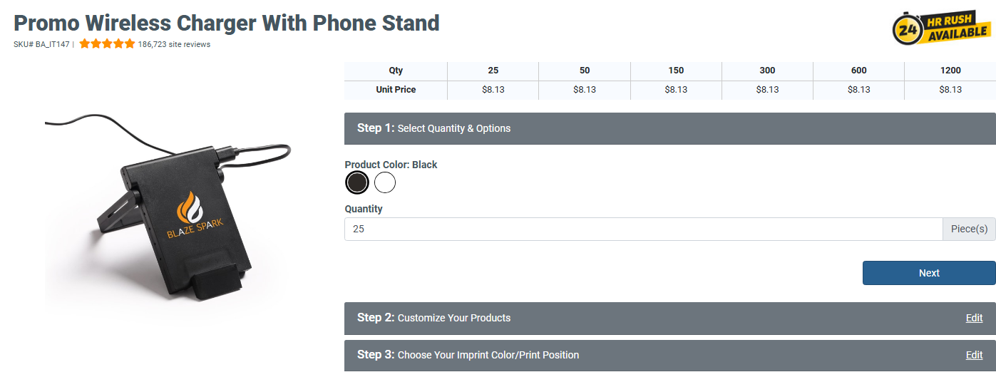 Order here: https://24hourwristbands.com/shop/products/promo-wireless-charger-with-phone-stand