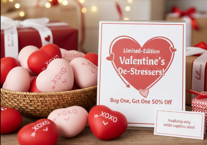 Another option is to include stress balls as limited edition items available only during the Valentine’s Day season. Limited time offers help create urgency and motivate both early planners and last minute shoppers. When positioned correctly, these products become part of a special collection that customers associate with the holiday.