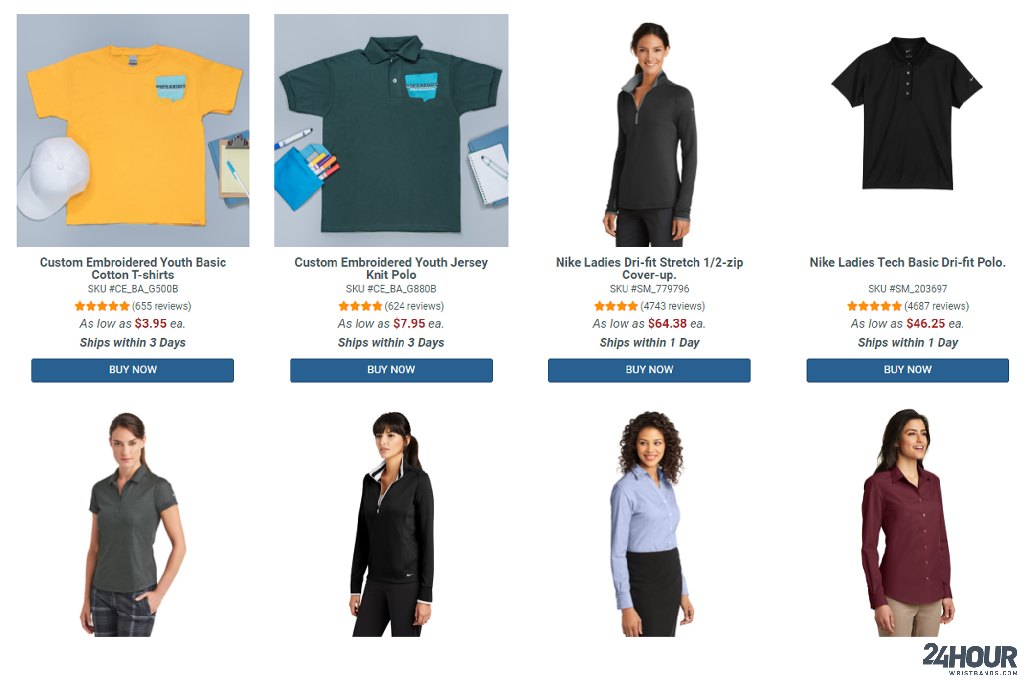 Order here: https://24hourwristbands.com/shop/products/custom-embroidered-ladies-basic-cotton-t-shirts